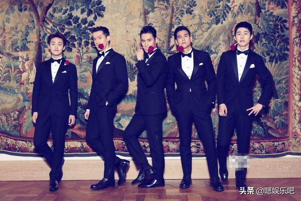 她们的婚礼最强亮点就是“最帅伴郎团”,由彭于晏、刘昊然、胡歌、马天宇组成,他们身着统一的黑西服风度翩翩,这颜值随手拍张照就是杂志大片,超级帅气养眼呢!