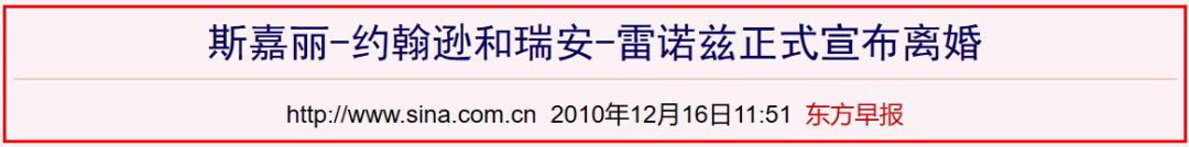 2010年年底,在分居半年后,斯嘉丽与结婚两年的丈夫,因“性格不合”和平分手。