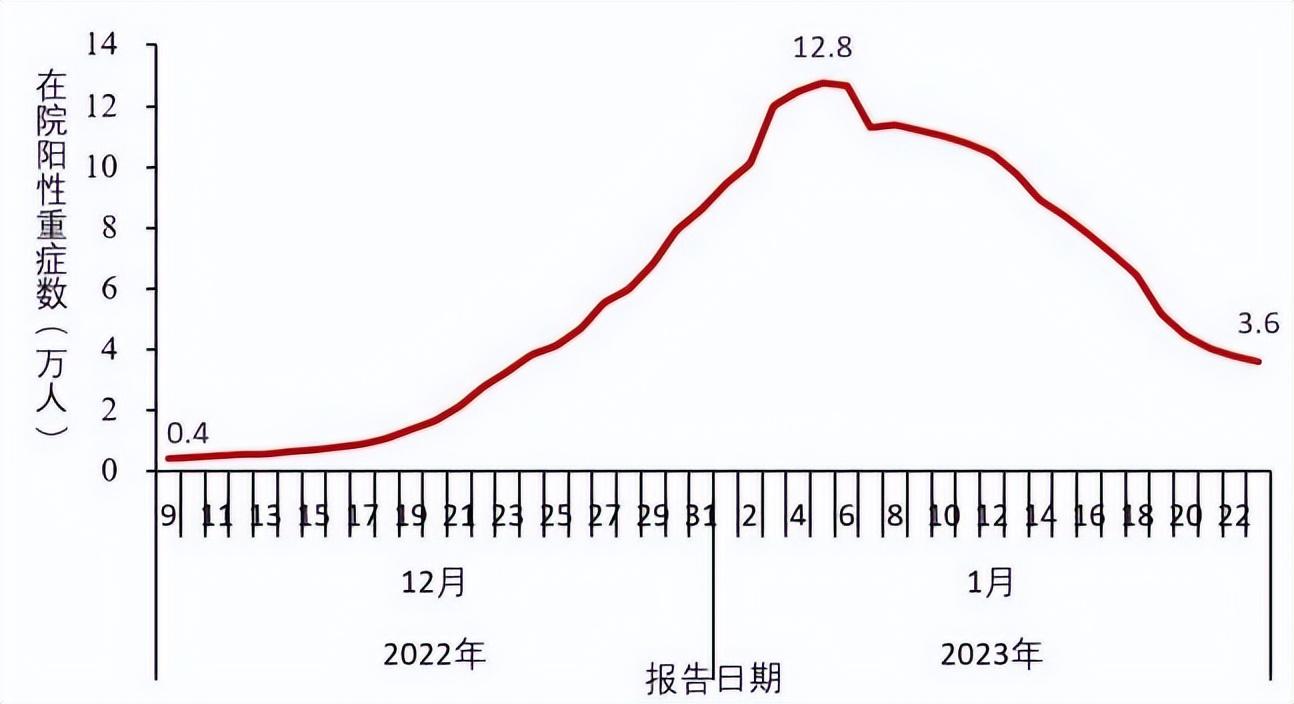 在院新冠病毒感染死亡病例数于1月4日达到每日峰值4273,随后持续下降,1月23日下降至896,较峰值下降79.0%。